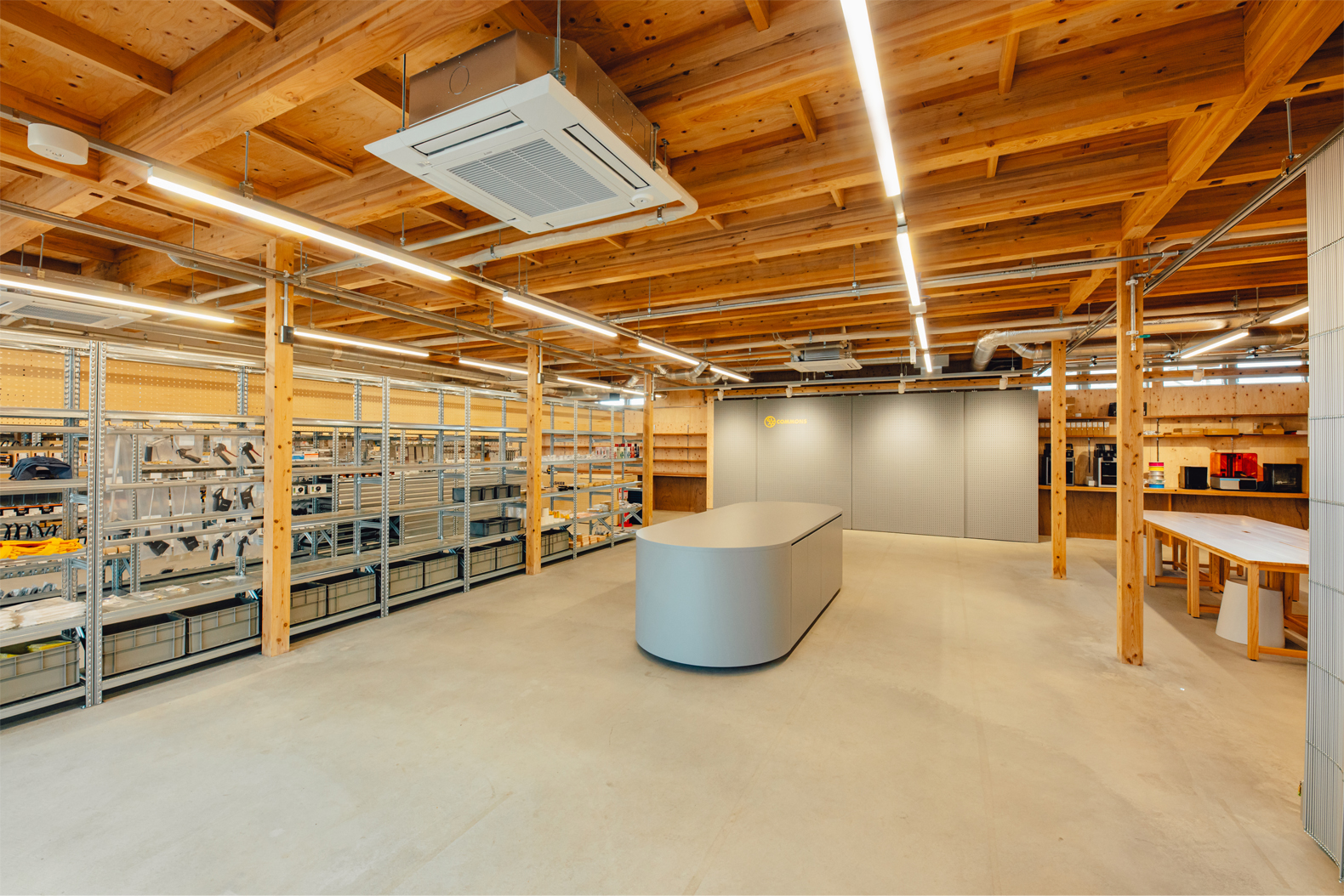 施設の⽞関である「COMMONS」をはじめ、機械部品や⼯具が24時間購⼊可能な⼯業界のコンビニ「PRO-SHOP」、